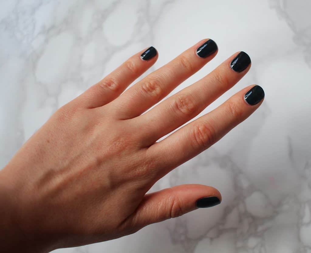 by Orly is a deep green, so deep that it looks almost black. It has a